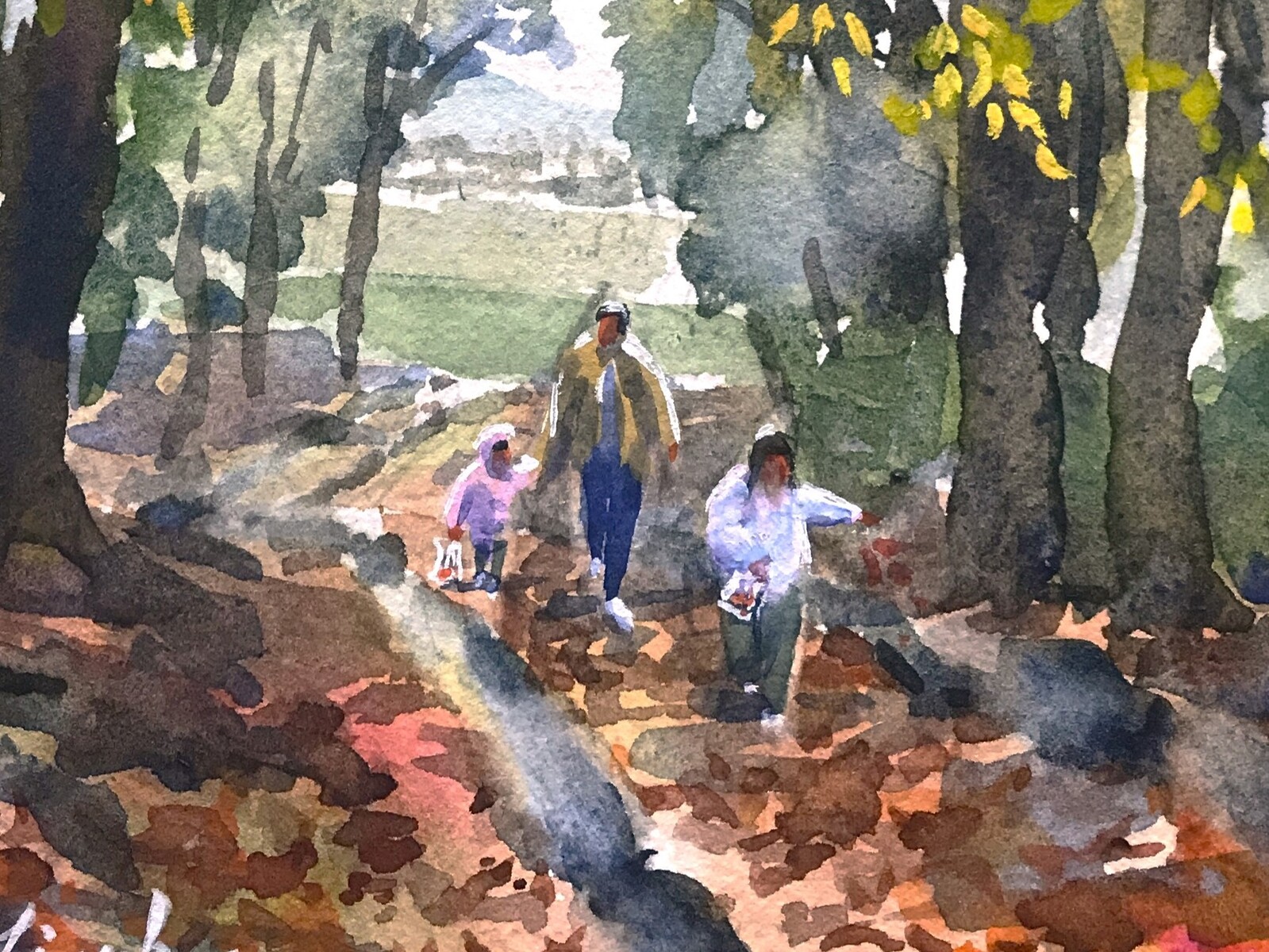 ↓ 通りがかりの落ち葉拾いの親子が印象的でしたので、リフトしてから描き入れました♪