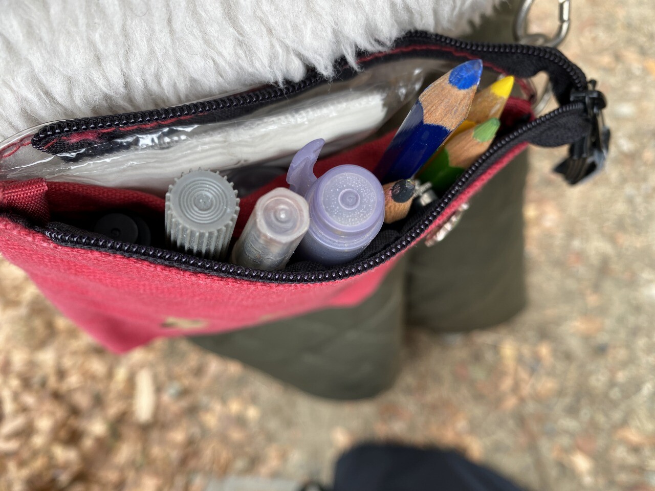 軽量化についてもいかにすべきか色々試しています。この写真のポシェットを使う案は・・・使いづらかったので却下。