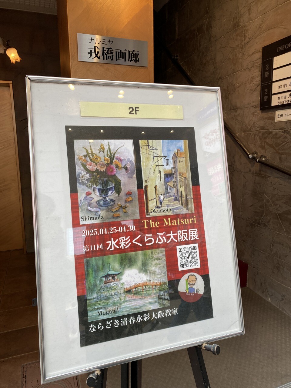 今日は、絵画友達でもあり講師友達でもある大口かつみさんと一緒にミナミはナルミヤ戎橋へ「第11回 水彩くらぶ大阪作品展」を観に行きました。