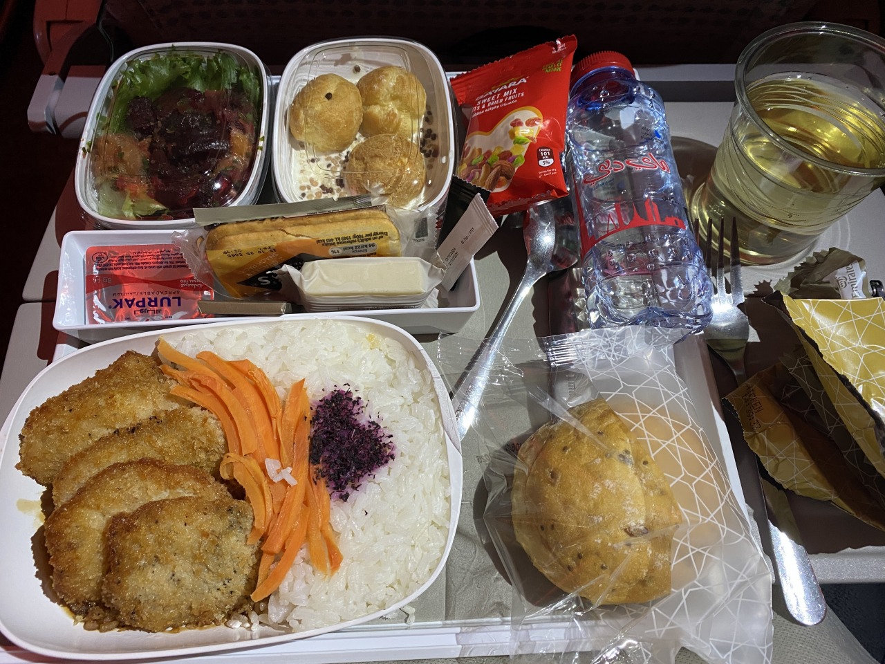 で、行きと同じ時間の飛行なのに、行きは4食ついていて、帰りは2食という。何故???