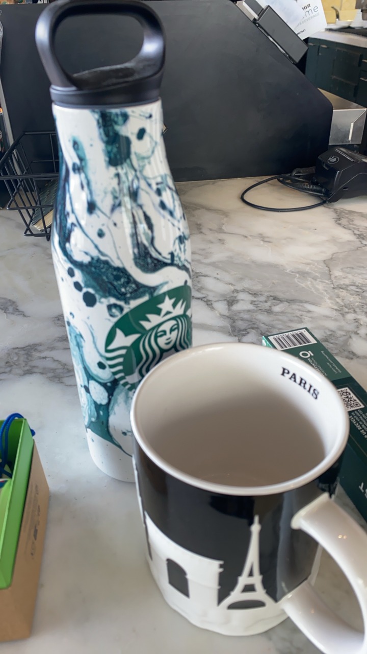 空港でスタバを探して、フランス限定のマグカップなどを購入(子供の希望)