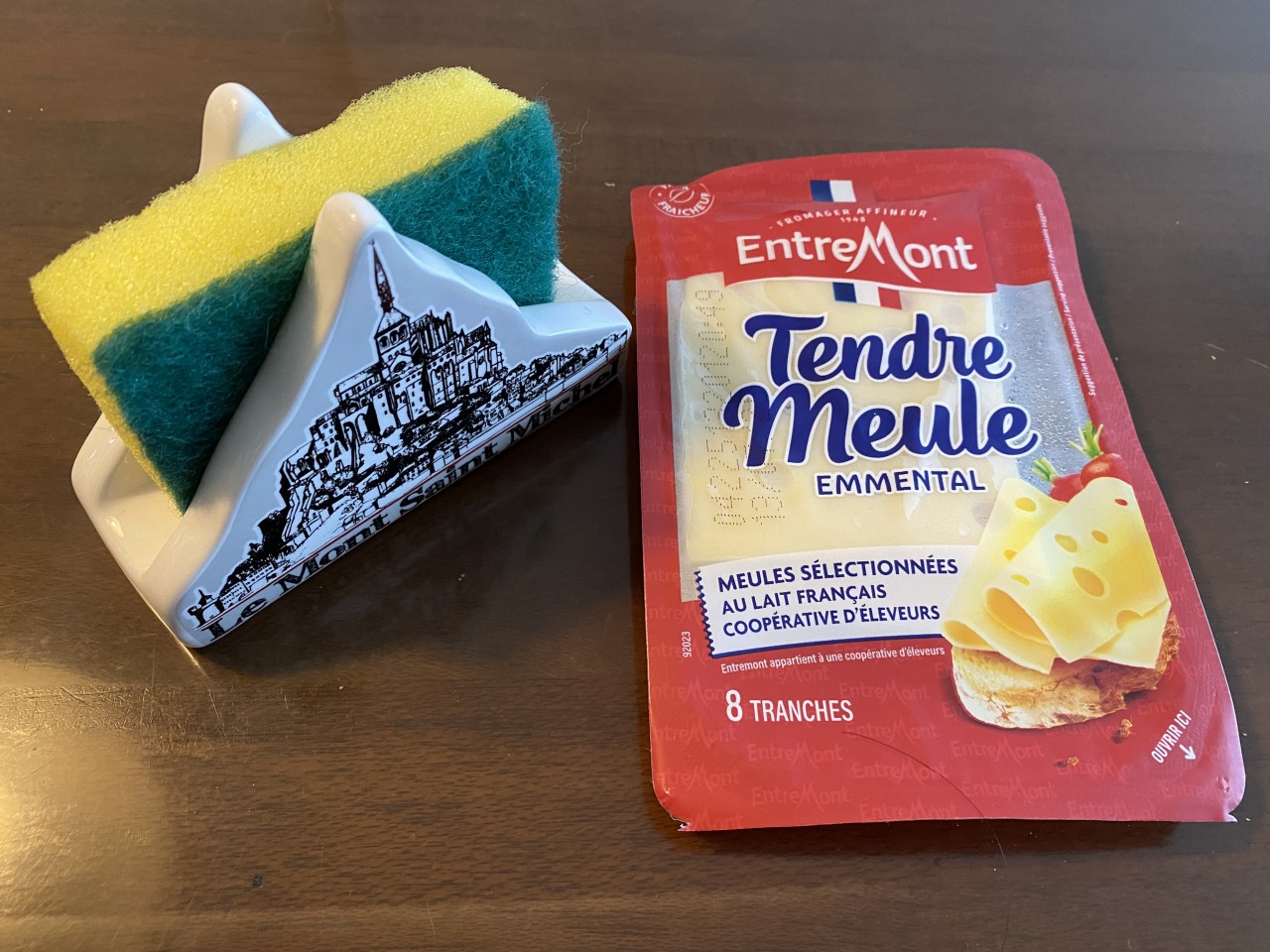 スーパーのお土産物は総じて安く、現地の土産物店のお土産はお高い傾向にありました。左下のモンサンミシェルのスポンジとスポンジスタンドはスーパーで500円くらいで安かった。