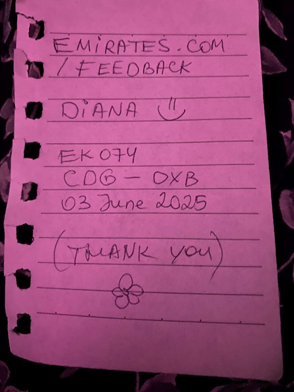 ☟フィードバックもよろしくとのことで、帰国後はエミレーツのサイトから英語で楽しかったエピソードを送っておきました。会社からは丁寧な返信が来たけど、ダイアナさんには伝えておきますとのこと。